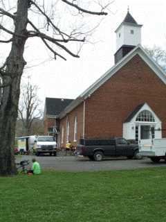 | the pastor of the church stopped by to chat; he tells us that the mountain we'll climb tomorrow is just as bad as today's. but then we have a layover day at breaks interstate park; we'll be glad to give our knees & various other worn-out parts a rest. |