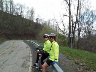 spent almost the whole day on state route 80 west. that meant some stretches of pretty heavy traffic, especially for the first 5-6 miles this morning. & much of that heavy traffic was heavy trucks....logging trucks, coal trucks. i noticed a coal-mining site this afternoon. the curvy mountain roads we rode today are so narrow that every once in a while you need to get off the edge of the pavement to let vehicles go by. |