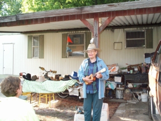 | then she started singing & playing her tiny banjo & ukelele.....& she threw in some yodelling, too. we joined in on the songs we knew, swinged & swayed, & in general enjoyed a unique after-dinner treat. |