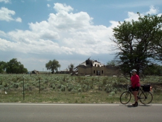 | the landscape today was flat flat flat. here we thot kansas was flat. eastern colorado can outflat kansas any day. & oh my is it deserted. we managed to find a convenience store in tribune, 22 miles into today's ride, & that was the last place with any services (i.e., food) 'til we got to eads tonight---almost 60 miles with no place to get anything. once or twice we rode thru towns that were on our route sheet. in one, sheridan lake, we'd heard there was a restaurant. when we got there we learned that there were 2 restaurants; both closed long ago. |