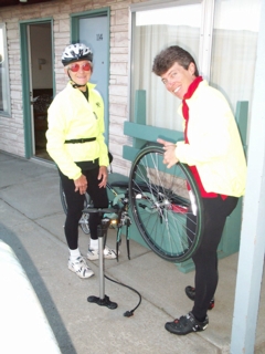 here's a picture of how a biker doesn't like to start her day. as barbara rolled her bike out of her room at the motel in eads she noted that she had a flat tire. |