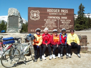 | once we got past the steepest & crookedest part of the descent we ended up on a gently sloping roadway into breckenridge. what a built-up & commercial area it is...but of course the scenery is breathtakingly beautiful. we made our way to the tyra condos where we're staying. each condo has 4 bedrooms; there are 7-9 of us in each. they have full kitchens, fireplaces, decks, 3 baths, & even after we park all our bikes inside, they're quite roomy. |