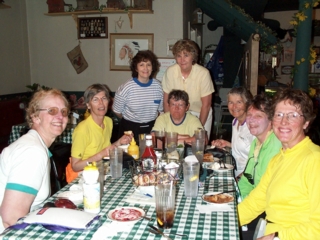 sauce) served over rice, & the most wonderful fresh tomato/vidalia onion/cucumber salad with fresh herbs in its light dressing. patty kidded us that she could feed us anything with peanuts in it & we'd eat it. she buys peanut butter in huge containers. most of us make peanut butter sandwiches for our lunches. in my peanut butter sandwich i put raisins & dry-roasted peanuts; joan adds m&m's to her sandwiches. & of course we make ourselves little baggies of gorp most mornings...peanuts, m&m's, & raisins. if the FDA suddenly discovers a lethal toxin in peanuts, most of us won't make it to the west coast. |