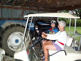 | sari & i were daydreaming & missed the first turn. fortunately gerrie had also missed the turn & was heading back when we came upon her. if we hadn't seen gerrie i don't know how far down the wrong road we would've gone. we 3 got ourselves reoriented & headed down the right road. |