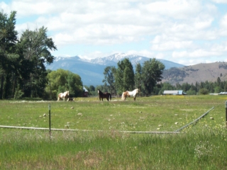 | a roadside sign informed us that we were riding through the big hole valley, "land of 10,000 haystacks." indeed we had noticed quite a few haystacks dotting the beautiful green valley. the area is known for its abundant hay, fine horses, cattle, & great hunting & fishing. the early explorers called valleys holes...."holes" in the surrounding ring of mountains; hence jackson hole & big hole. |