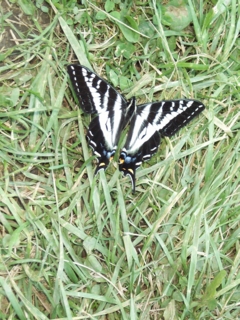 | on the way back to our cabin from supper sari & i saw this butterfly. quite a few riders have seen this variety a lot lately along our route. we don't know what kind it is. if you do, please let me know . | ![]() |