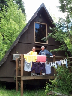 | today was one of those lazy crazy days of summer. weather here in lowell was perfect...sunny, lovely fluffy puffy clouds, light breezes. sarah went off to do some whitewater rafting by mid-morning. i understand that the staff (becky, patty the chef, debby, & claudine) went horseback riding. patty fainer & anne went on a hike. the rest of us enjoyed doing little odds & ends---handwashing (there's no laundry in lowell), cleaning & lubing our bikes, catching up with email/pocketmail, & napping. for us the main exercise of the day was walking the 1/2 mile to the restaurant up the road for a meal or 2. |