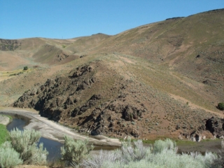 back in '84 there was an earthslide here....which created a large hole in the side of the hill (to the right out of this picture). it covered highway 86 (since relocated; you can see where the old road disappears). the fascinating part is that the earth here is still moving...at the rate of 1/2 inch per day, & it'll keep moving 'til the year 2014. so far the earthslide has moved 10 million cubic yards of soil & rocks. it's kind of eerie realizing that the earth can slip away like that. |