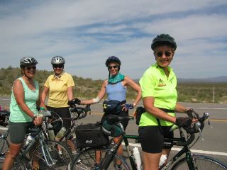 | this is one of those impromptu stops. here are, from left, karen, donna, patty, & caroline. again you get a glimpse of the beautiful landscape all around us.....arid, but pretty. |