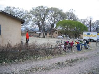 | at mi 53 we came upon the new mexico welcome sign, then kept pedalling downward, ending up on 20 miles worth of rollers that finally brought us to the Southwest Christian Camp where we'd spend the night. |