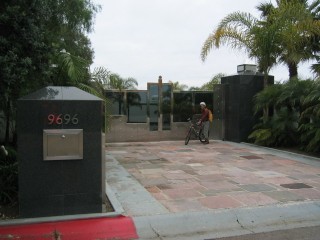 | after our oatmeal et al. breakfast, peter & i took off on our bikes. sari was attacked by a bug of some sort overnight so had to stay home. peter & i rode north to the scripps institute, just a few mins away, then further north to an area of extravagantly fancy homes in an area called "la jolla farms." sari told me that she learned that one of the homes, in 1998, was worth 28 million. it was owned, but seldom visited, by an arab prince. the home had 5 kitchens.....one for each wife! even from just the outsides, the homes were opulent beyond description. |