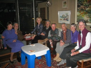 | what a wonderful evening i enjoyed with sari's & peter's swiss friends. you can see from the photo what warm & friendly people they are. unbeknownst to me, sari had alerted them to wear purple, so the place was a purple wonderland. uli even brot along a purple renuncula (sp?)--a flowering plant--that graced the center of our dining table. it was such a treat for me to get acquainted with these folks whom sari has talked about so often. after dinner sari showed her slides from our 2000 x-country ride. i'd never seen them, so what fun it was for me to relive that trip. | ![]() |