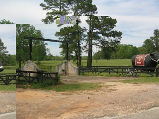 | all through texas we've noticed a variety of ranch entrances, or gates....some pretty basic, some quite fancy. today we came across this ranch gate guarded by a huge steer. you can see my bike leaning against the fence near the steer, so you know how big he is. |