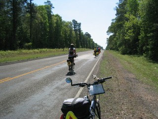 | shortly thereafter, at about 22 miles, we met my 4 iowa city friends at the intersection of farm roads 223 & 787; they had ridden from cleveland this morning. we then all headed down the road together for silsbee, where we would all overnight at the pinewood inn. |