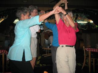 | patty couldn't resist the pull of the music, so was soon dancing with a local woman she later learned comes there every monday night to enjoy this band's music. it wasn't long before others joined in. the local woman was adept at showing newcomers how to do the cajun dances. |