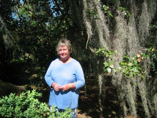 | here's a photo of anne butler. she lives in the main plantation house & is the 7th generation of the original owners. the smaller buildings on the property are b&b cottages. besides giving tours of the plantation & managing the b&b, anne is also an author. a recent book is "weep for the living." |