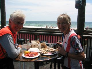 | the evening was very short, because our table in the motel's dining room had very poor service; it took us almost 3 hours to get our meal. but the good news is that we bike only 53 miles tomorrow---to crestview. hopefully more delicious seafood awaits us en route. |