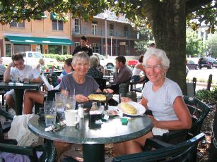 | at the bike store yesterday, sari & i had asked about places to eat in town while we were here. tec had recommended a couple spots, including 'andrew's' down near the capitol building. so late morning, sari & i decided to walk down that way along the apalachee parkway to check out the sunday brunch, which we'd heard was very good. even tho' roma didn't want to dine there, she wanted to walk, so joined us. |