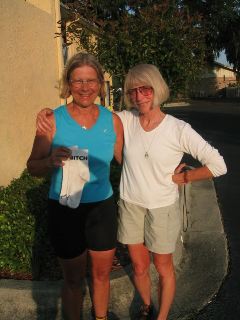 | later this morning, anne (in the orange top in the photo) had help from an unexpected source in getting to st. augustine. her back tire went flat; it's very hard to change, & patty (today's sag person--in the blue tank top) wasn't having much luck with it either. then along came the 3 fellows in this photo. they're from ohio. they left san diego on mar 31 & plan to arrive in st. augustine tomorrow, thus completing the southern tier route in 30 days (at approx 100 miles per day). they did say that they sometimes took a different road than recommended by adventure cycling if it provided them a more direct route & saved them miles. one of their wives is providing sag support. |